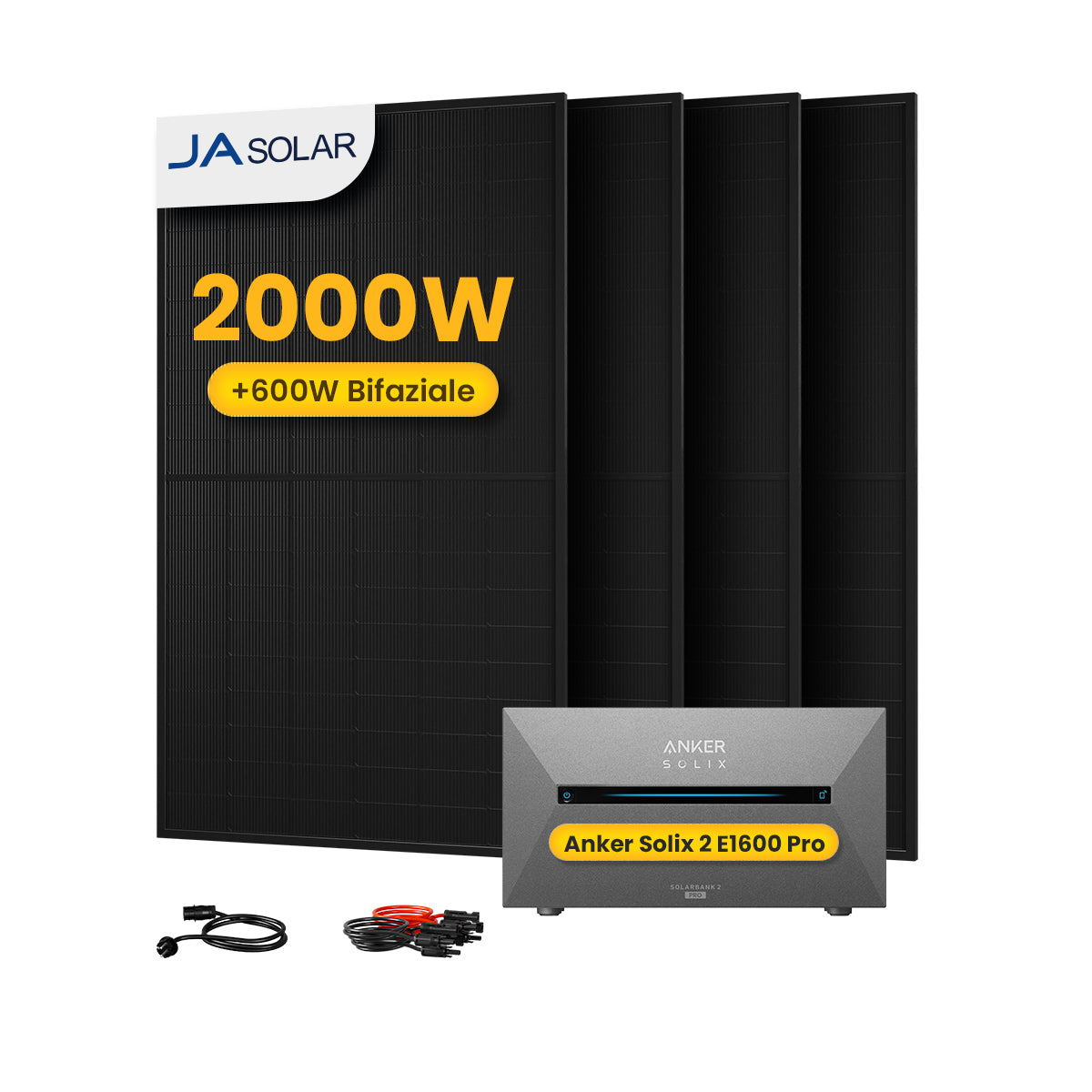 Anker SOLIX Solarbank 2 E1600 Pro All-in-One Speicher für Balkonkraftwerk, mit 4 x 500W JA Solar Bifaziale Solarmodule,by Powerness