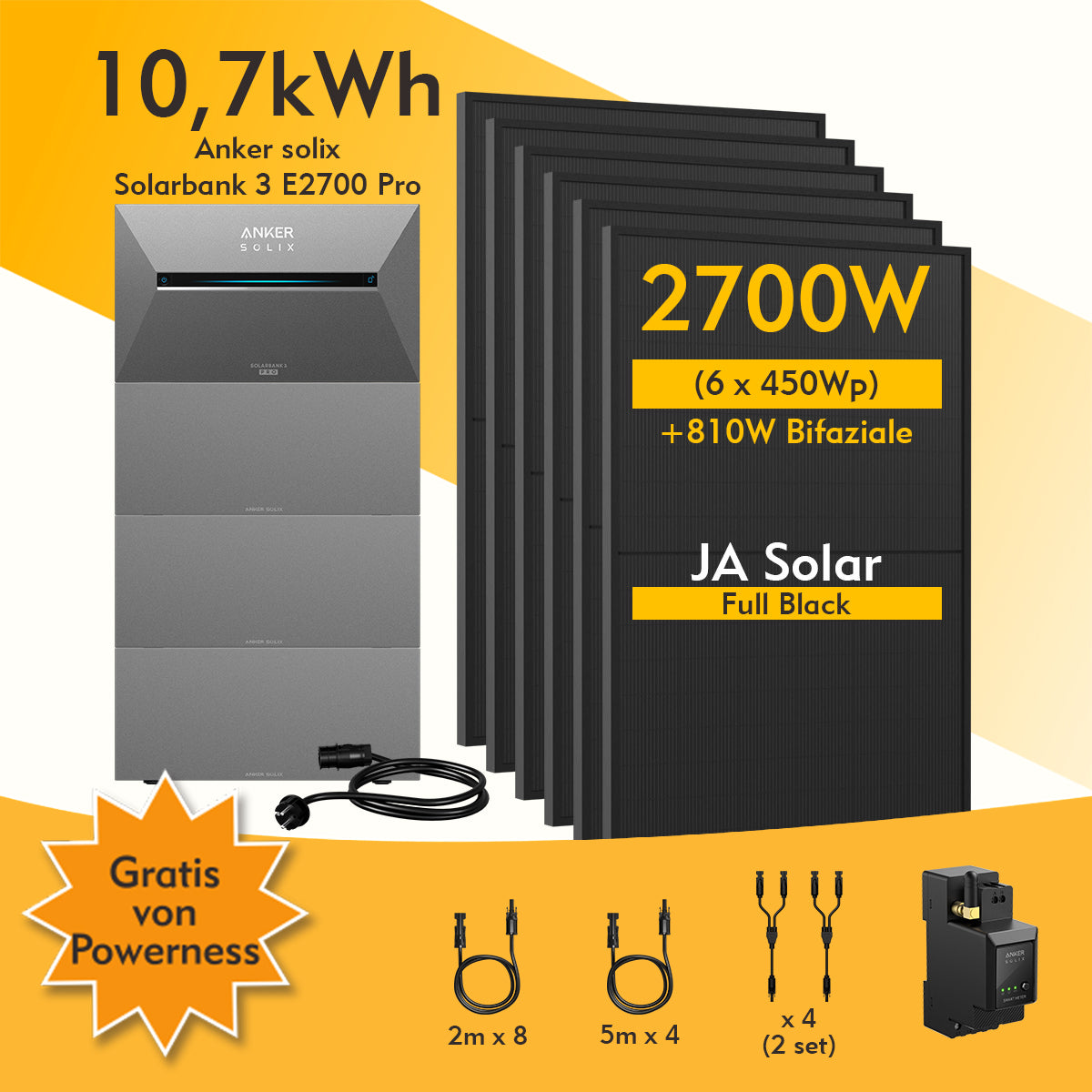 Anker SOLIX Solarbank 3 E2700 Pro, 6-8 Solarmodule, mit MC4 Kabel