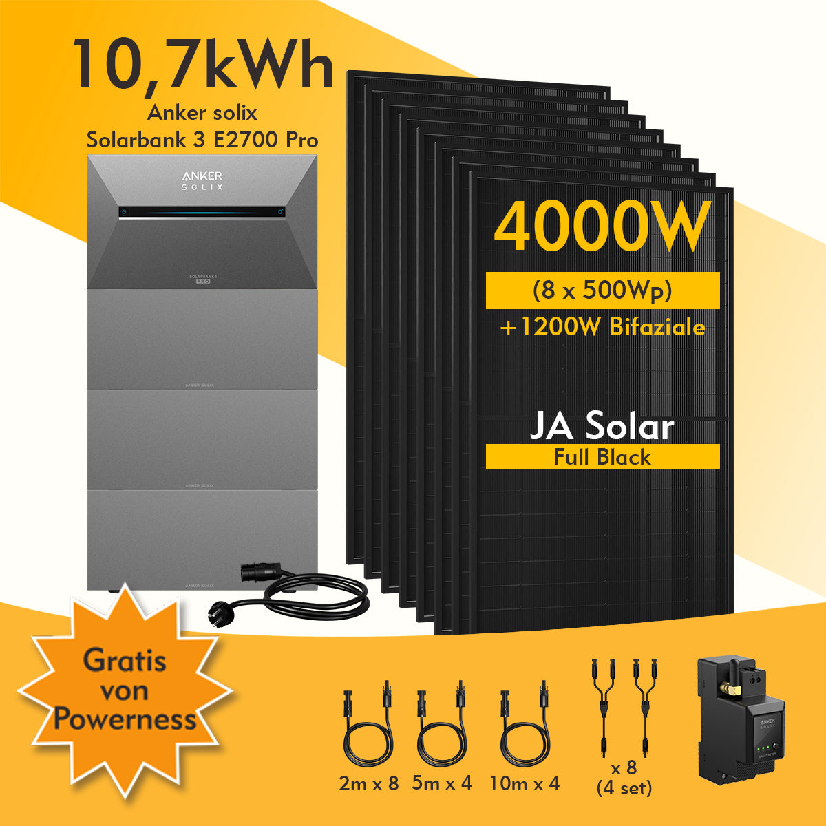 Anker SOLIX Solarbank 3 E2700 Pro, 6-8 Solarmodule, mit MC4 Kabel
