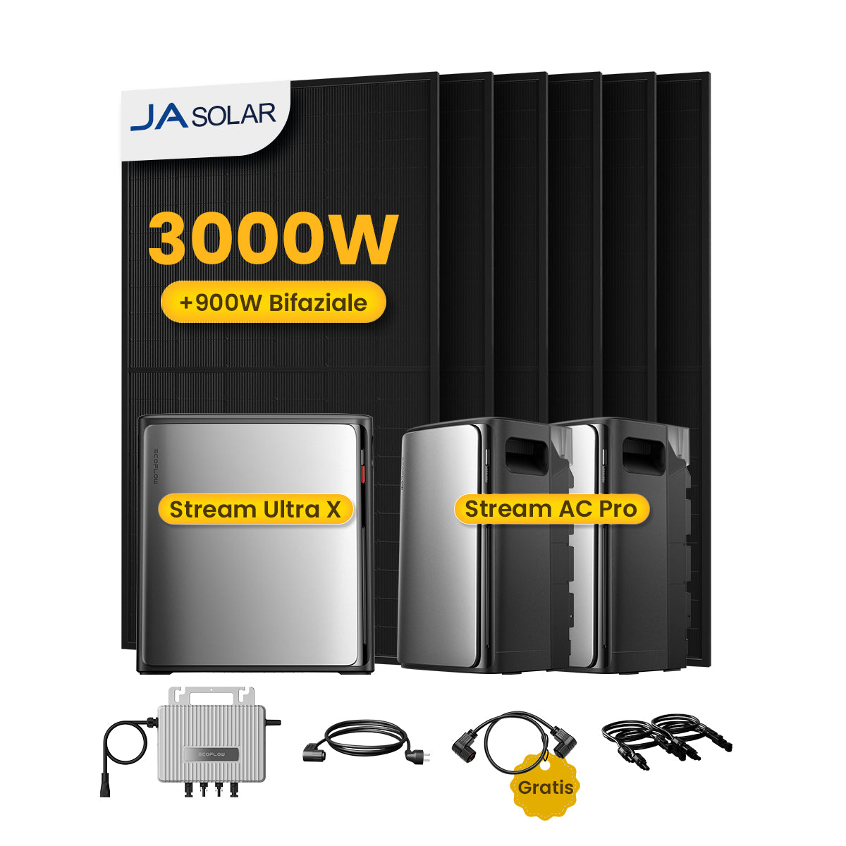 EcoFlow Stream Ultra X, All-in-One Speicher für Balkonkraftwerke, mit 6 x 500 JA Solar Bifaziale Solarmodule, by Powerness - Stream Ultra X + 2 x Stream AC Pro | 7680Wh / ohne Zubehör / Standardversand